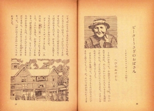P50〜P62まで 14ページ分 「ピーターうさぎのおばさん −ビアトリクス・ポッターの話ー」 ![]() 『ピーターラビットのおはなし』の著者ビアトリクス・ポターを日本で初めて紹介したと思われる書籍。 (大東文化大学 河野教授 発見) 書籍の表紙は、立派なお屋敷に住むバラに囲まれた庭園で、うさぎを抱いた少女のイラスト。もしかしたらこの表紙は、書籍内のビアトリクス・ポターをイメージして描かれたものかもしれない。 |