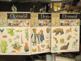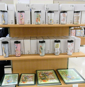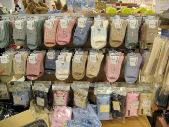そごう大宮店で開催されましたハッピークリスマスフェアに行ってきました。人気のキャラクターたちが勢ぞろいして、色とりどりに華やかな雰囲気のなか、ピーターラビット、スージー・ズー、ミッフィー、パディントン・ベア、スヌーピー&ウッドスティック、ウサビッチなどなど。 ![]() (写真左) そごう大宮店7階催事場に設置されたクリスマスツリー (写真右) オーナメントは、映画「ミス・ポター」公開記念グッズのフェルトのピーターラビットキーチェーンがぶらさがり、雲のようにふわふわして、ツリーにとても似合っていました。 ![]() (写真左) ツリーの下には、ピーターラビットの包み紙でラッピングされた大きなプレゼントもディスプレイされていました。 (写真右) その横には、ピーターラビットが誕生したきっかけが紹介されていました。 ![]() (写真) 実はこのツリーは見る角度により、それぞれのキャラクターに変化します。先程はピーターでしたが、角度を変えると、ミッフィー(写真左)が登場し、続いてスージー・スー(写真右)も。アイデア満載のツリーに驚きました。 ツリーの向こう側に、ジャンボピーターが番頭さんのように座っているのが見えますでしょうか?そこには、ハッピークリスマスフェアで話題となった、イベント限定「栗スマスパン」がワゴンに1日100個限定で販売されていました。 ![]() (写真左) ジャンボピーターの横に、ピーターラビットの栗スマスパンのワゴンが。 (写真右) ワゴンの中には、ピーターラビット?の栗がつまったパンがたくさん並んでいました。 何でも、このイベントのために誕生したもので、パン生地は天然酵母を使用し、また黒糖を仕込むことで濃くと風味を醸し出し、パンのなかには栗がぎっしりとつまった栗餡が自慢だとか。お店の方に「オススメ!!」と太鼓判を押され、気づけば「栗スマスパン」が買い物カゴの中へピョーンと入ってました。 ![]() (写真左) 袋から栗スマスパンを取り出すと、愛嬌のあるお顔に思わず笑みがこぼれます。 (写真右) 栗餡のなかに栗がたっぷり入ってました。次の日に召し上がる時は少し温めたほうがさらにおいしく召し上がれると思います。 ![]() (写真左) ジャンボピーターが、栗スマスパンの応援団長のようですね! (写真右) この愛らしい看板が目印でした このイベント限定パンを制作なさったのは、あこ天然酵母のパン「あこべる」。 ピーターラビットグッズコーナー ![]() (写真左) この垂れ幕の下がピーターラビットコーナー。 (写真右) 文房具、タオル、ぬいぐるみなど陳列されたこの一角と、その隣の棚もピーター。 ![]() ピーターのクリスタルシリーズも販売されていました。クリスタル収納箱のケースが、こんなにおしゃれだったとは、、、実はクリスタルに見入ってるのではなく、ケースのデザインが素敵でした。 ![]() (写真左) シール&タイルデコシールシリーズがこんなにいっぱい。シールコーナーの全景。 (写真右) シールコーナー全景写真の右上から3段目、ピーターラビット・タイルデコ アレンジシリーズ3種類。 こんなマニアックな柄いいのかしら?と小躍りしたくなるような、『「ジンジャーとピクルズや」のおはなし』や、『カルアシ・チミーのおはなし』、『アプリイ・ダプリイのわらべうた』に登場するキャラや、小物(マグカップやポット、バスケット)類なども。草花だけを集めたものなど。 ![]() (写真) こちらは、サイズがひと回り大きく、物語の背景となるタイルデコシール。 これでアレンジすれば、お部屋のあちこちがおはなしの世界へと通じる入口となります。 ![]() (写真左) シールコーナー全景写真の左上から3段目、 ドアや机を集めたシールや、『カルアシ・チミーのおはなし』、『「ジンジャーとピクルズや」のおはなし』、『アプリイ・ダプリイのわらべうた』から集めたもの、『ピーターラビットのおはなし』、『ベンジャミン バニーのおはなし』を集めたもの。 ![]() (写真) シールコーナー全景写真の真ん中より2段目、ピーターいろいろ。『キツネどんのおはなし』からも。 こんなにたくさんの種類が増えたら、まずはどれからにしましょうと悩むこと、悩むこと。結局、一度では決まらず、ランチを食べた後に再び舞い戻って悩みました。 ![]() (写真) ソックスもこんなにたくさん種類が増えていましたよ。一番人気は、ピーターの顔シルエットソックス。水色シルエットが真っ先になくなっていました。 ![]() (写真左) 「ピーターラビット 冬のおはなし(仕掛け絵本)」 大日本絵画(刊) 2009年10月 ピーターとベンジャミンが雪が降るなか、薪を拾いに行く途中で、チュウチュウおくさんの子供たちを救う冒険物語。(『キツネどんのおはなし』をベースに創作されたもの)。最後のページに雪化粧した大きなモミの木が飛び出し、各ページのポケットに入っている雪の結晶をレイアウトできるという仕掛けも。 (写真右) ピーターラビットプレミアムシール。 このイベント開催中、商品代金の合計(