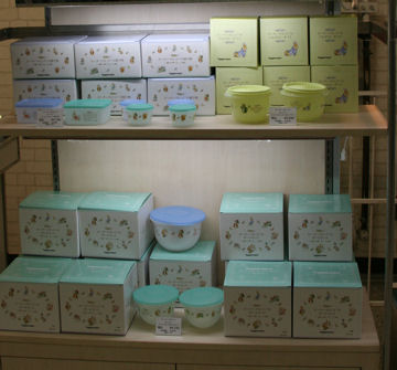 松坂屋デパートメントストア100周年記念として様々なイベントが催されている中、2011年に日本語版の「ピーターラビットの絵本」シリーズが出版40周年を迎えるのを記念して「日本語版出版40周年記念 ピーターラビット展」が開催されました。 ![]() (写真左) 地下鉄名古屋駅の構内にはイベント告知ポスター (写真右) 「ピーターラビット展」が開催されている松坂屋名古屋本店 ![]() (写真左) 「ピーターラビット展」が開催の案内表示。 (写真右) 「ピーターラビット展」へのエントランス ![]() ピーターラビットの絵本シリーズ 第1集 福音館書店(刊) 1971年 『ピーターラビットのおはなし』『ベンジャミン バニーのおはなし』『フロプシーのこどもたち』の3冊セット 1971年、日本語の正式な翻訳本が出版された「ピーターラビットの絵本シリーズ」第1集(↑写真)と第2集。 原書とまったく同じ挿絵、原書のテキストのリズムを崩さぬよう日本語をはめ込み、絵本のサイズも同じに出版されました。原書と違っていたことは、ビアトリクス・ポターが出版した順番ではなく、日本独自の順番で出版されたこと。 3冊セットで第1集から第8集まで、発売された順番は下記のビアトリクス・ポター・ブックリストを参照ください。 ビアトリクス・ポター・ブックリスト http://rapeter.sub.jp/bk/book3.html 今回、松坂屋の大催事場で企画されたこのイベントは、福音館書店から発売となった日本語版翻訳本が来年2011年で出版40周年を迎えるということを記念して開催されました。 1.ピーターラビットの紹介 エントランスを抜けると両側の壁一面に、絵本作家ビアトリクス・ポターの紹介とその作品を紹介するボードが並びました。このボードは絵本型のパネルになっていて、まるで大型の絵本を見開いたかのようなページいっぱいに、作品を完成するために描いた膨大なスケッチや撮影した写真などの資料などを含めながらそれぞれの作品について紹介されました。 2.日本での40周年資料館 次のエリアは、1971年の正式日本語翻訳版が出版される以前のビアトリクス・ポター作品について、日本における翻訳本の歴史について紹介されていました。世界最古の翻訳が日本語版であったこと、映像作品も世界最初に製作したのが日本であったことなどを解説パネルと共に紹介されました。正式な日本語版でないため、作風も個性があり、原作にはない色使いも見られました。 1971年以前の日本における翻訳本の歴史についてまとめたページ・・・ http://rapeter.sub.jp/bk/book127.html 関連記事: 中日新聞(8/10) 幻のピーターラビット作品公開へ 日本人映像作家高橋克雄氏 1959年製作 他にも、 ・朗読レコード「ピーターうさぎ」 お話:黒柳徹子さん 歌:草間摂子さん エンゼル社(発行)1958年の視聴 ・正式日本語版の翻訳を手掛けた石井桃子さんの「ピーターラビットシリーズ」に関する資料や手帳の公開 ・福音館書店より発刊された初版本の展示 ・日本で最初にピーターラビット関連グッズの正式ライセンスを取得(1976年)したファミリアのピーターラビットグッズや、その当時発売されたグッズなどの展示 など、日本におけるビアトリクス・ポター作品の歴史について紹介されました。 3.ピーターラビットの世界&写真撮影スポット ![]() ![]() ピーターラビットと仲間たちが勢ぞろいしたスポットで、絵本と同じ舞台で記念撮影できるコーナー。 4.アトラクション&プレイコーナー 親子で楽しめるコーナーとして、『ベンジャミン バニーのおはなし』より、キャラクターを壁面の抜けいている穴の中に押し込める壁面パズルや、ボールプールの中に野菜クッションを浮かべた楽しいプール遊び、ケーキのようなソフトクッションをころがして遊べたり、子供たちが大喜びするコーナーがありました。 また、音楽CD「ピーターラビットと森の仲間たち」より、井上あずみお姉さんが歌う「ぼうけんしよう、ピーター」に合わせて振付動画が公開されました。 5.ピーターラビット情報館 ピーターラビットがメインキャラクターを務めている ナガシマ・リゾート(三重県桑名市)や、埼玉県こども動物自然公園(埼玉県東松山市)などの紹介パネルや、イギリス湖水地方・ヒルトップ農場を再現した大東文化大学ビアトリクス・ポター資料館の紹介、ピーターラビットをテーマとしたフラワーショップPeter Rabbit Flowers、その他今後予定されているイベントやキャンペーンなどの盛りだくさんの情報が公開されました。 ・2011年春発売予定 「日本語版出版40周年記念 絵本セット」 福音館書店 入園入学のお祝いにぴったりなギフトセット ・2010年9月1日リリース 日本語版出版40周年記念「携帯”きせかえ”」登場 バンダイナムコゲームス ドコモ・KDDI用「きせかえキャラっぱ! ピーターラビット」 ・2010年12月16日発売予定 うさぎ年記念 干支コインコレクション「ピーターラビット」 泰星コイン ・2010年10月発売予定 うさぎ年記念「うさぎもち」プレゼントキャンペーン きむら食品 ・2010年11月1日 うさ