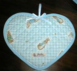 ピーターラビットの生地を使って、かわいいハート型にデザインされました。