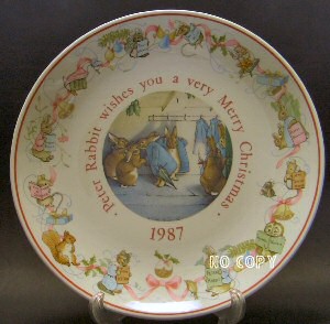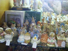 ▼アンティークショップ ピーターラビットアンドフレンズを出て、再び通りを歩いていると、目の端にピーターがチラッと写りこみ、また空似に違いないと自分をなだめつつ気になって入店。 ![]() ヨークのアンティークショップ やっぱり空似じゃなかった。店に一歩足を踏み入れたらそこはパラダイスが広がっていた。 ▼そこで見つけたものは?! ![]() ロイヤルドルトンシリーズのフィギュアがこれでもかと並べられ、写真右側の棚はもう収集がつかないほど。 ![]() 棚は一段だけでなく、上も下もロイヤルドルトンのフィギュアたち ボーダーファインのフィギュアも(写真右) もうこーなったらコバンザメのようにディスプレイに貼りつき見入ってしまい、にっちもさっちもいかなくなった私を友人がそっと引きはがし、「ラピータさん、欲しいフィギュアをリストして教えてくれたら、近いからまたそのうち来るので購入しておきますよ」という呪文を耳元で唱えてくれたのだった。 「ほんとに、いいの?そんなことお願いして」「うんうん(笑)」 そこで、この日はこのショップに入るきっかけとなったチラッと目に写ったピーター、それは棚の一番上にあったウェッジウッドのクリスマスプレート、1987、1988、1989年の3枚を購入。埃をかぶっていたこのプレート、でも棚の上でなければ私の視界に入ってこなかったかもしれないし、うさぎアンテナ恐るべし。 プレート3枚 54ポンド(1枚18ポンド) ![]() ![]() ピーターラビット専門店には少ししかなかったお宝が、あるところにはあるんですねぇ〜。うさぎアンテナ最高潮でした。 |