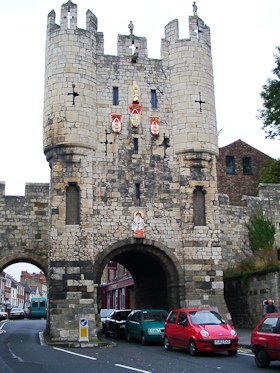 ▼ヨークミンスター大聖堂 ![]() 英国最大のゴシック建築「ヨークミンスター大聖堂(York Minster)」 グロースター大聖堂を見てきたばかりなのに、ヨークミンスター大聖堂はグロースターを上回る迫力で、その大きさに驚く。全体を写しこむのは至難の業で、大聖堂の迫力が半減して残念。 大聖堂内部には入場せず、ヨーク旧市街を取り囲む城壁を散策。 ▼城壁散策 ヨークは旧市街を取り囲むように城壁が残されていて、フットパスのように自由に散策ができる。 ![]() インフォメーションセンターでもらった地図より。青のでこぼこ線が城壁(City Wall)。青矢印の部分に階段があり、そこから城壁へと上がれる。 ![]() 城壁から望むヨークミンスター大聖堂(写真左) 腕の中にお宝のプレートを抱えながら城壁を散策中(写真右) 城壁の高さは建物2階建てぐらいで、高所恐怖症の私には足がガクガクして周囲の景色を楽しむ余裕はあまりなかったが、向こうからやってくる人とのすれ違いもスムーズなぐらいの道幅で歩きやすかった。これぞ中世の町並み、タイムスリップしたかの気分を味わうことができた。 城壁は途中途切れながら町をぐるっと囲み、すべて歩くと1時間30分かかると地図に記載。私達は途中の階段で城壁を降り、ヨークの町を後にすることに。 ▼マイケルゲートバー 帰り道、マイケルゲートバー(Micklegate Bar)という城壁の下をくぐるゲートがあった。 ![]() マイケルゲートバー このような中世の町並みが残る城壁の下を、なんともミスマッチな光景だけど現代の馬車、車がくぐり抜ける。 |