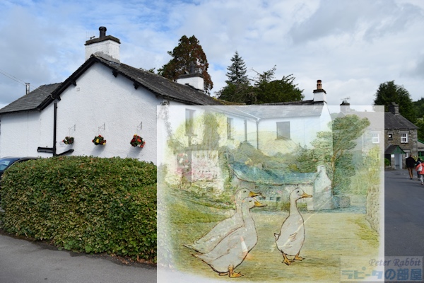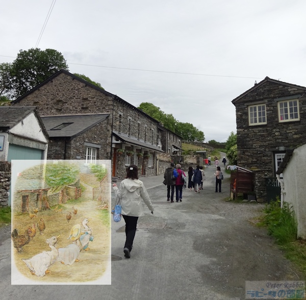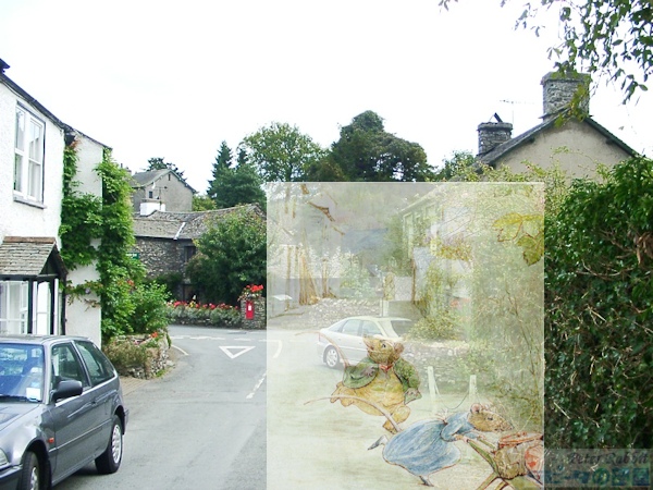▼モス・エクルス湖へ向かう道中にも絵本の舞台が続々登場 ヒルトップ農場を堪能した後、その隣には『あひるのジマイマのおはなし』で描かれたタワー・バンク・アームズ、その先に『パイがふたつあったおはなし』や、『こねこのトムのおはなし』で描かれたバックル・イート、そしてニアソーリーのポストがあります。 ![]() タワー・バンク・アームズ(Tower Bank Arms) ![]() バックルイート(Buckle Yeat) ![]() ダッチェスが立っていた玄関先の横に、何故かマグレガーさんが! ![]() ニアソーリーのポスト このポストは、1928年に出版された『ピーターラビットの暦本』の2月の挿絵として、ピーターラビットとそれを見守るフロプシーたちが描かれ、そしてこの作品が広まることで一躍有名になりました。ここに来たらピーターと同じ構図でポストカードを出してみたいと思うことでしょう。私も2003年に訪れた時、このポストに投函しました。 ![]() ポストまでやってきたら、後ろを振り返った先につながる道路へと進んでいきます。この道は、ストーニー通り(Stoney Lane)という通りで、ポストを背にして右側に『「ジンジャートピクルズ屋」のおはなし』の舞台となった雑貨店がありました。こちらは改築され、昔の面影が少し残っているだけです。 ![]() そして通りを少し先に進んで振り返ってみると、『ひげのサムエルのおはなし』で、ヒルトップハウスを逃げ出したサムエルとアナ・マライア夫妻が後ろを振り返った先にビアトリクスが立っている、そんな場面を思い起こします。 ![]() さらに先に進んで、右側に横丁が見えてくるとそこは鍛冶屋横丁で、『「ジンジャートピクルズ屋」のおはなし』で、ピクルズが巡査にばったり出会う場面です。 ![]() ストーニー通りをさらに進むと、少しずつ登り坂になり、左手にB&Bの「ベルグリーン」があります。ここはビアトリクスがヒルトップハウスを改装中に宿泊した場所です。 ![]() 右手に見える「カースルコテージ」は、ビアトリクスが結婚後移り住んだ場所です。 ▼ニアソーリーの永遠に変わらないと思った景色に変化が ![]() そして『ひげのサムエルのおはなし』に描かれたバレイショさんの納屋は、なんだかおしゃれなコテージに変わっていました。 ![]() 目の前のゲートの先は、舗装されていない道となり、いよいよモスエクルス湖へと続きます。舗装されていない道路に入る前にゲートがあり、ここは『こねこのトムのおはなし』で描かれたドレーク一家が立ち去っていく場所です。 ![]() ひとつ上の写真と同じ場所ですが、私が2003年に訪れた時の様子。この道の両脇におしゃれなコテージが建ち、この辺りの雰囲気が変わってしまいました。まったく変わらぬ景色の存続は、様々難しい事情があったかもしれませんが、少し残念です。 さて、ドレークとジマイマとレベッカが向かった先にあるモス・エクルス湖へ、私達も「ぴたり、ぱた、ぱたり、ぱた」と目指しました。 |