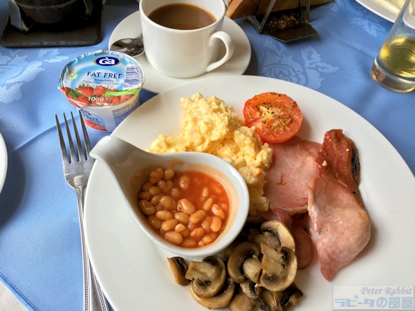 ▼牧場経営のターニングポイントとなったトラウトベック・パーク農場 湖水地方に滞在し3日目の朝(旅は4日目)を迎えました。2日目の朝は、朝食リクエストを前日の夜までに出し忘れ慌てましたが、3日目はじっくりメニューを選んでリクエストしたので、朝から盛りだくさんです。 ![]() ベーコン、マッシュルーム、ベイクドビーンズ、グリルトマト、スクランブルエッグ、ヨーグルト、ジュース、コーヒー、パン。パンは、ホワイトかもしくはブラウン、それともその両方のミックスと選択できました。 天気は今にも雨が降りだしそうな曇り空の中、最初の目的地のトラウトベック・パーク農場へ向かいました。ボウネスの宿から車で約20分ほどでした。 この農場は、ビアトリクスが1923年、57歳の時に、敷地約1900エーカー(東京ドーム164個分)を取得し、湖水地方で最大級となる農場の地主となりました。これまでは、ヒルトップ農場で農場経営のノウハウを学ぶ日々だったビアトリクス。そしてこの広大な敷地を得ることにより、彼女のそれまでの農場経営のキャリアを、さらなる高みへと引き上げた場所となりました。 大規模農場となると、これまでのやり方と同じでは通用しません。また平地ではなく気温差が激しい高原牧場の難しさ、牧羊夫も優秀な人材でなければ務まりません。ビアトリクスの遺骨を散骨したことで知られているトム・ストーリーは、トラウトベック・パーク農場の牧羊夫として1926年に雇われ、その後17年間苦楽を共に過ごした仲間となりました。 私達は、このトラウトベック・パーク農場こそが、彼女にとって農場経営をさらに面白くさせた、人生におけるターニングポイントのひとつでもあるように感じていたので、是非ともこの目でどのような場所なのか見ておきたいと思ったのです。 問題は場所でした。観光スポットではありませんので、農場近くで見学するのは不可能です。もしできるだけ近くで見たかったら、徒歩でフットパスを利用すれば、もう少し近くで見ることは可能のようでした。しかし、徒歩となると半日はかかりそうです。不安と期待が入り混じった中、一度はそこに行くのを諦めましたが、「憧れの湖水地方をとことん堪能!北部10湖巡りツアー」というミニバスツアーで、カークストン峠に行く途中に、トラウトベック・パーク農場が見える場所でバスを停めて、写真撮影することができたという情報を友人より聞きつけ、それもそのツアーを主催しているのは、私達が利用していたマウンテンゴート社でした。 こうして私達も無事に、カークストン峠に続く道路の途中にある路側帯にバスを停め、バスの乗り降りする際に十分注意するよう言われましたが、無事に高台より見ることができました。 ![]() 朝靄がたちこめるトラウトベック・パーク農場 ![]() 手前に建ち並ぶ建物は、必要に応じてビアトリクスが増やしていった母屋となっているコテージ、羊飼いのための宿泊施設や、犬舎や恐らく納屋なども。 ![]() 円筒形の煙突、縦と横に仕切りのある窓もそのまま保存されているようです。 ビアトリクスは、ここでの農場経営が楽しく、「神秘的で静寂に満ち、ささやくようなこだまが聞こえる場所」としました。 ▼トラウトベック・パーク農場は『妖精のキャラバン』の舞台 ![]() 『妖精のキャラバン』ビアトリクス・ポター(著)久野暁子(訳)福音館書店(刊)より 石造りのコテージを描いた挿絵は、『妖精のキャラバン』に登場します。おはなしでは「日の当たる開けた牧草地は、とても気持ちがいいものです。薄暗い林の中にいた後ではなおのことです。牛や羊がのんびりと草を食み、子羊が飛び跳ねています。」と、この農場での様子を表現しました。 ![]() 建物の後ろにそびえるこんもりとした山は、「Tongue」と呼ばれる古北欧語の「tunga」が語源の言葉で、2つの谷の間にある卓状地(楯状地のうえに地層が重なる台地 テーブルランド)という意味です。母屋から一気に地形が盛り上がる様が、実際で見た方がよりリアルに伝わってきました。 カークストン峠へと向かう道路は、湖水地方の峠道の中でも1,2位を争うほどの標高差がある峠道なので、この農場はその手前にあり、かなりの高さより農場を見下ろしたことになります。こうして短い時間でしたが、車で近づけるぎりぎりの場所で、トラウトベック・パーク農場を見ることができました。 ▼ビアトリクスも農場で飼育したギャロウェイ種の牛 次に少し宿のあるボウネスの方向へ戻ることになりますが、私も初めて訪れるレイ・カースルへ向かいました。その道中、ビアトリクスが飼育に夢中になったギャロウェイ種の牛がいました。主にスコットランドの低地特産種として飼育された角無し種で、南西部のギャロウェイに古い起源をもつ牛です。 ビアトリクスは、弟のバートラムが結婚後スコットランドに移り住み、農場経営していたこともあり、この牛の姿の美しさをもちろんのこと、痩せた土壌への対応力もあ