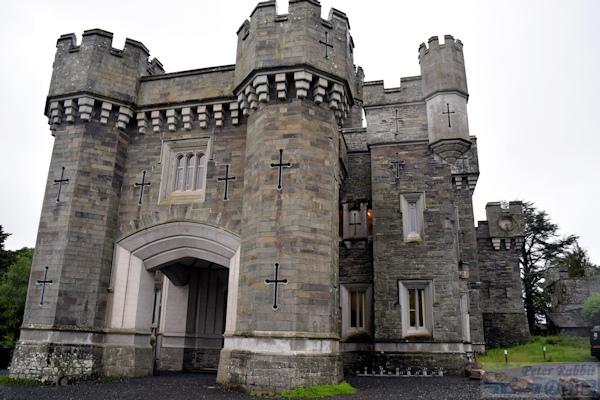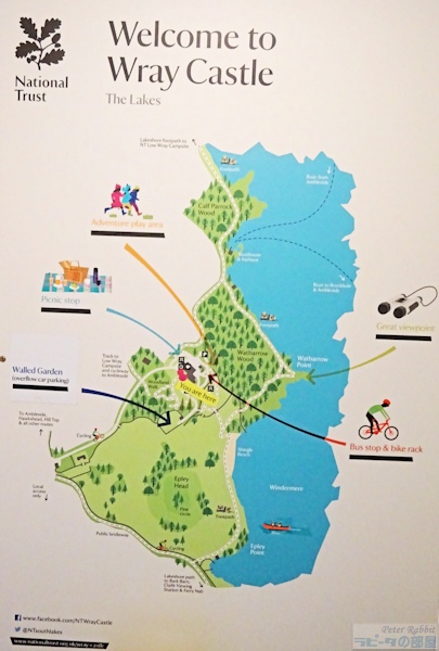 ▼湖水地方で初めて訪れた地、レイ・カースルへ 次の目的地レイ・カースルは、湖水地方で最大の湖、ウィンダミアの北西の湖畔にあります。前日、ヒルトップ農場へ向かう道中で、一瞬だけレイカースルが見えました。 ![]() こちらが一瞬だけ見えたレイカースル。手前がウィンダミア湖で、その先の森に囲まれ要塞のような建物の塔の一部が見えます。この辺りの森は、地名にちなみ「ワットバロウの森(Watbarrow Wood)」と呼ばれています。 レイ・カースル(Wray Castle)は、ビアトリクスが湖水地方に初めて訪れた1882年、16歳の時に滞在した屋敷です。その屋敷は、18世紀後半から19世紀にかけて流行ったゴシック・リバイバル建築(Gothic Revival style)で、1840年リヴァプールの医師ジェイムズ・ドーソンが、妻の父親のジン製造で得た利益で建てました。 妻の父、ロバート・プレストンは、リヴァプールでドライジン(蒸留ジン)を製造し、その蒸留所があった町の通りの名前に、ジンには欠かせないボタニカルであるジュニパー(西洋杜松)にちなんで、「ジュニパー通り」と名付けられるほど繁栄しました。肝心の妻マーガレットは、夫の建てたレイカースルを見るなり二度と足を踏み入れることはなかったそうです。 ビアトリクスは、建物の奇抜さよりも、室内のアンティークな家具に魅せられ、もし自分が家を建てたらこのような家具を並べたいと、書斎や屋敷内の廊下をスケッチし魅せられました。 さて私達は、レイカースルで行うミッションがありました。ビアトリクスがレイカースルの前で撮影した有名な記念写真と同じ位置で撮影を行うこと。私も初めて訪れる場所なので、恐らくこの辺りだろうと予習はしていたものの自信はありません。いざ撮影しようとしましたら、あろうことか車が1台横づけされていて、どうしても写りこんでしまいます。脚立を屋根に積んだ関係者の方かと思い、車を動かしてもらえるよう頼んでみましたが、こっちも困ると相手にしてくれません。みんなで「ちょっとぐらいどかしてくれてもいいのに」とブーブー言いながら(笑)撮影しました。 ![]() 撮影位置は、ビアトリクスの記念写真と見比べると、もう少し後ろにさがって撮影した方が良かったみたいです。 ![]() こちらは正面入口。威圧的で圧倒的な存在感のある建物は、真ん中にある背の高い塔が中心となりその周りに城郭風な屋根が並び、その周りに矢を入れる切れ目の入った小塔が覆っていて、窓は垂直にスライド開閉する落とし格子の窓で、印象的なコントラストを与えています。 ![]() 敷地面積は、830エーカー(東京ドーム71個分)で、ウィンダミア湖に向かって森が広がり、反対側の敷地は牧草地が広がっていました。周囲はフットパスが完備されていて、ウィンダミア湖までの散策も楽しめます。 ![]() この先は入場料が必要 大人9.6ポンド。建物の内部は、長い間子ども為の施設として利用され、一般開放されていませんでした。現在は内部も見学できますが、ビアトリクスが魅せられた調度品など、子どもの室内遊び場(遊具)となっているため撤去されました。装飾を施した柱や、高い位置に張り出した天井の梁、建物の構造物はその当時のまま見られます。 ![]() そしてウィンダミア湖を一望できるこの景色も、建物の上階の方がより全体を見渡せると思います。 ▼運命の出会いをした聖マーガレット教会 ![]() 私達は、もうひとつのミッションのために、小雨降る中をミニバスで通り過ぎた最初のゲートへ向かって、ぞろぞろと歩きだしました。 レイカースルに行ってみて分かったお勧め見学コースは、まずはレイカースルのゲート前で停車し、ゲートの右隣りにある聖マーガレット教会を見学後、再びバスに乗り込みレイカースルへ。このように見学すれば、ゲートからレイカースルまでの約1キロ(片道 徒歩10分から15分)の往復をカットできます。まさか敷地内がこんなに広いとは想像もしていなかった。雨さえ降ってなければ、牧草地を横目に見ながら楽しいお散歩になったかもしれませんが。 聖マーガレット教会は、ビアトリクスが初めて湖水地方に滞在する5年前、1877年にロウレイ(Low Wray)区の教区牧師として、ハードウィック・ロンズリーが赴任しました。ローンズリー牧師は、湖水地方の美しい自然に魅了され、自然景観保護のための活動を行い、やがてナショナルトラストの創設者として、永遠に語り継がれる存在となりました。そんな運命的とも言えるビアトリクスと、ローンズリー牧師が出会った場所こそがレイカースルでした。 河野先生の書籍「ピーターラビットの世界へ ビアトリクス・ポターのすべて」の第7章で紹介されている聖マーガレット教会について、「レイ・カースルに訪れるときは、ぜひとも訪れていただきたいスポットです」とあります。 ![]() 聖マーガレット教会。現在は、建物の保存がされているものの、利用はされておらず、外観を見るだけです。見学者は、私達の他に先に来ていたピーターた