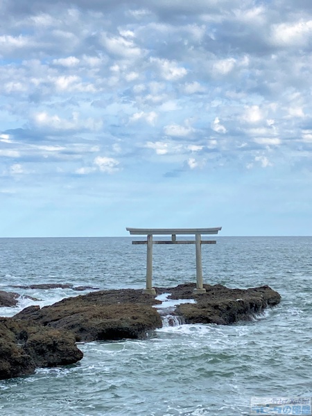 突如として海が光り輝き、常陸国鹿島郡大洗の地に御祭神が御光臨されたと言われている岩礁にある「神磯の鳥居」です。
