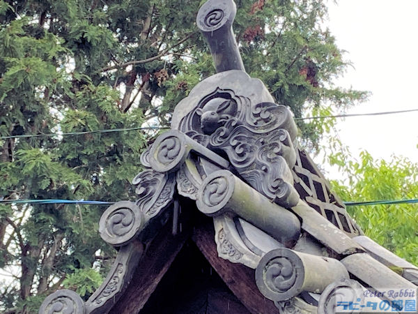 三尾神社の家紋ならぬ神紋は「真向きのうさぎ」、太古の昔より言い伝えで、兎が神様のお使いとされている。