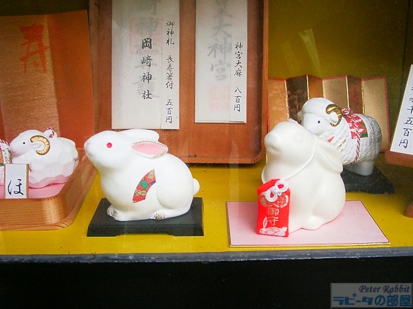 ![]() この地域一帯が野ウサギの生息地だったことや、ウサギは多産なことから氏神様の使い神使いとして伝えられている。 ![]() 手水舎に黒御影のうさぎ像 このうさぎ像は、子授け祈願として水をかけて祈願すると子どもを授かるそうな。 ![]() ![]() 本殿のうさぎ像は、神様を手招きしているかのようでした。 ![]() ![]() 神使いであるうさぎの置物 ![]() お守り袋にもうさぎ うさぎ尽くしの岡崎神社、京都にいらしたらぜひお参りください。 |