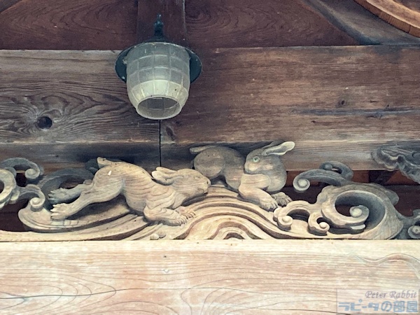 ひと言: 神社の大神のお使いと伝えられる白兎が常夜灯の上に鎮座しています。