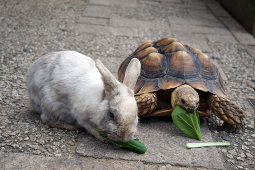 ![]() 月うさぎの里のメイン「うさぎ広場」は正面入口を入ってすぐ(入場無料) ![]() 月うさぎ神社 「ツキを呼ぶ」と伝えられる月うさぎ神社 ![]() 月うさぎの里のリーフレットによりますと、うさぎ広場はこんな感じだそうですが、 ![]() ・・・訪れた時間がいけなかった。ウサギたちはお昼寝タイム。広場の隅っこや角を陣取りウトウト ![]() 広場にある砂場は、巣穴トンネルがあちこち掘られていました。 「あるところにたくさんのうさぎたちがいました。そのうさぎたちは竹の木のしたの砂の穴の中にすんでいました。」ピーター家族も住んでいるかもしれませんね(笑) ![]() こんな時間帯でも元気なのは、巣穴から目で追えないスピードで出入りする仔ウサギたち。元気が良すぎてじっとしている間がほとんどなく写真もブレブレです。 ![]() それから200円で売っている「うさぎのごはん」のカサカサという音に反応して、お昼寝タイムのウサギたちがあっという間に寄ってきて争奪戦を繰り広げるほど元気になりました。例えばお気に入りの子にあげたいと思ってペレット入りの紙コップを握っていても、横から紙コップごと奪うという大胆不敵なウサギもいるほど。これぞウサギならではの光景でした。 ![]() うさぎの楽園かと思いきや、ケヅメリクガメ(2匹)もいました。ウサギとカメの2ショットを撮りたくてカメの大好物300円のおやつ(この日は小松菜でした)を購入し、小松菜はウサギの大好物でもありますからウサギもカメも大喜びで小松菜に夢中というツーショットが撮れました。 でもウサギは小松菜の芯も食べるのに、カメは芯いらないって食べないんですよ。贅沢ですね(笑) ![]() うさぎの広場でウサギたちと戯れた後、お食事処「加賀兎郷」で店内自家製ごまうどんを食べました。うどんがもちもちして美味しかったです。 ![]() うさぎ雑貨が2000点以上あるショップは目移りして大変です。その中でも映画公開キャンペーンでピーターラビットグッズも販売されていました。ここに来る車内でラジオからGW行楽地紹介で「月うさぎの里」がインタビューを受けていて、ピーターとのコラボしていることも紹介されていました。 うさぎ好きにはたまらない場所ですが、そもそも何故加賀にあるのか疑問でした。その謎がショップのポップに「加賀ではうさぎのものを贈ることがツキと幸福を贈るという意味で大変喜ばれています」とありました。 加賀の人たちは何かあるとうさぎの品を贈り、贈られ、生活に溶け込んでいるのかしら?なんて想像し、なんて素敵な町だろうと思いました。 |